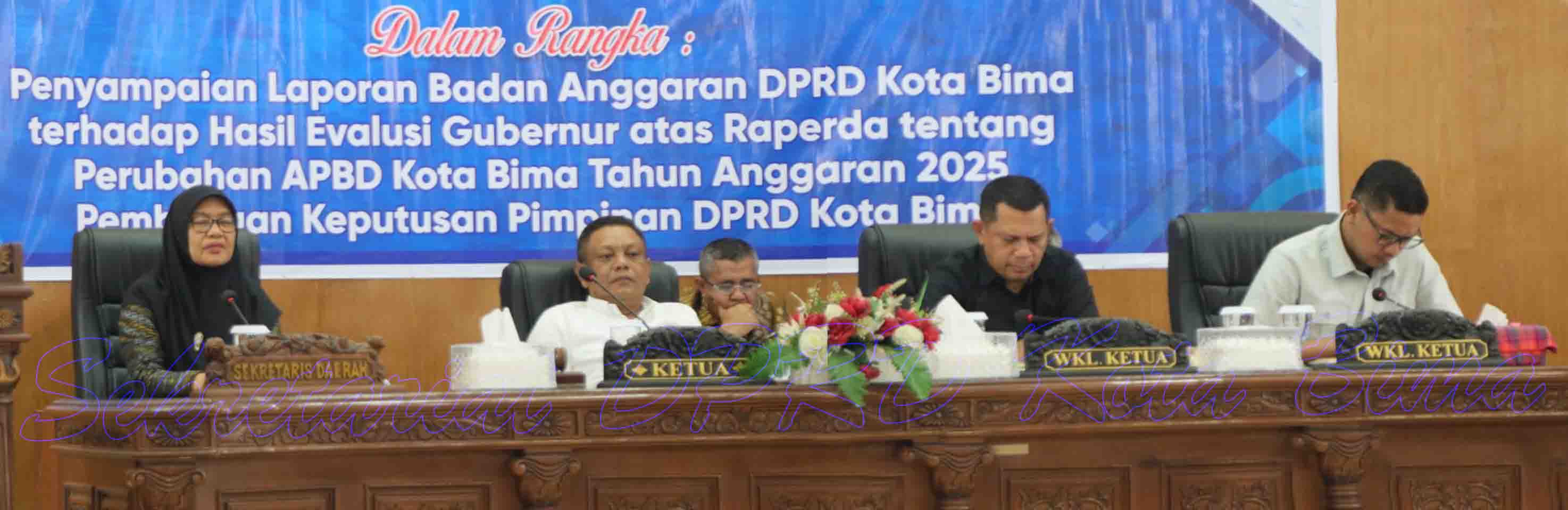 Usai Penyampaian Laporan Badan Anggaran Dewan Perwakilan Rakyat Daerah (DPRD) Kota Bima terhadap Hasil Evaluasi Gubernur atas Raperda tentang Perubahan Anggaran Pendapatan dan Belanja Daerah (APBD) Kota Bima Tahun Anggaran 2025, dilanjutkan dengan Pembacaan Putusan Dewan Perwakilan Rakyat Daerah (DPRD) Kota Bima oleh Plt. Sekretaris Dewan Perwakilan Rakyat Daerah (DPRD) Kota Bima Bpk. Ihya Ghazali, S.Sos. MM, kemudian dilanjutkan dengan Penetapan Anggaran Pendapatan dan Belanja Daerah (APBD) Tahun Anggaran 2025 oleh Pimpinan Rapat Paripurna yang juga selaku Ketua Dewan Perwakilan Rakyat Daerah (DPRD) Kota Bima, Yth. Bpk. Syamsurih, SH