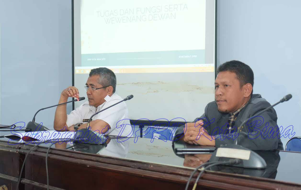 Paparan materi juga dilanjutkan oleh Kabag Persidangan dan Perundang-undangan Sekretariat Dewan Perwakilan Rakyat Daerah (DPRD) Kota Bima, Bpk. Muhammad Tajuddin, SH, yang menjelaskan proses penyusunan dan pengesahan Peraturan Daerah (Perda) serta ruang lingkup kerja komisi-komisi Dewan Perwakilan Rakyat Daerah (DPRD) sebagaimana termuat dalam dokumen materi kuliah.