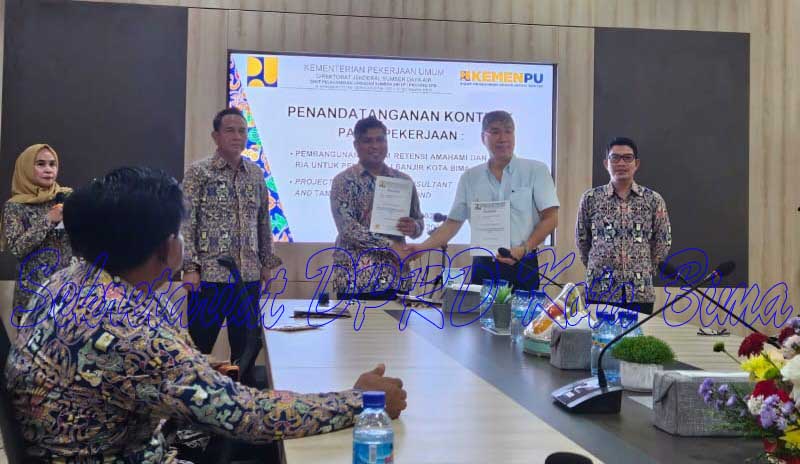 Sekretariat DPRD Kota Bima – Rabu 7 Januari 2026, Ketua DPRD Kota Bima, Syamsurih, SH, menyaksikan secara langsung penandatanganan kesepahaman kontrak paket pekerjaan Pembangunan Kolam Retensi Ama Hami dan Taman Ria sebagai upaya pengendalian banjir di Kota Bima, termasuk kontrak Project Supervision Consultant for Ama Hami and Taman Ria Retention Pond.